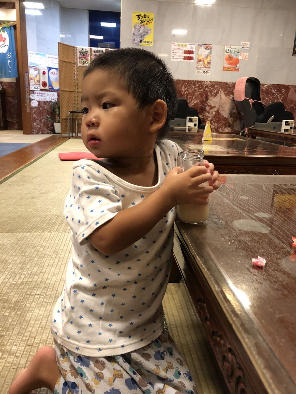 いつの間にかキャップも自分で取れるようになったし、ただマミー飲んどるだけやけど、1才の頃から比べるとだいぶ成長した感があるな~