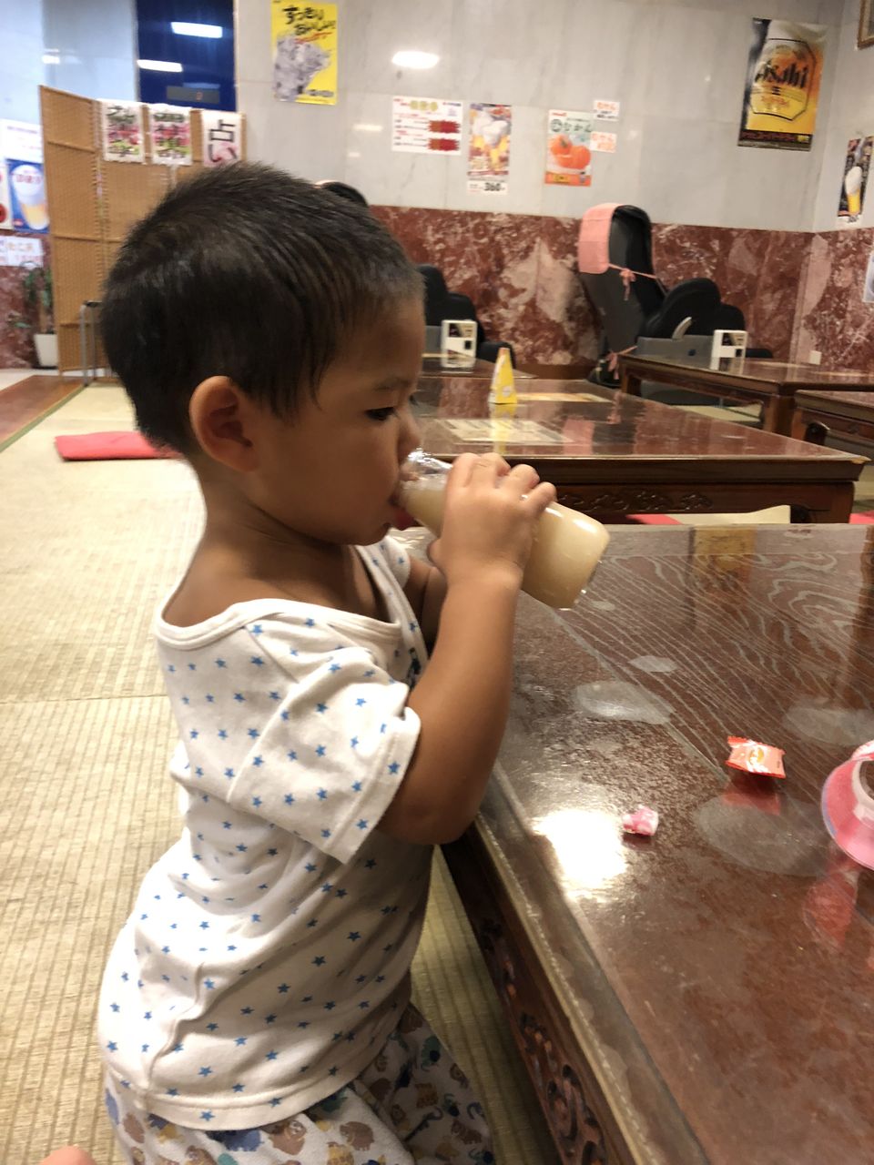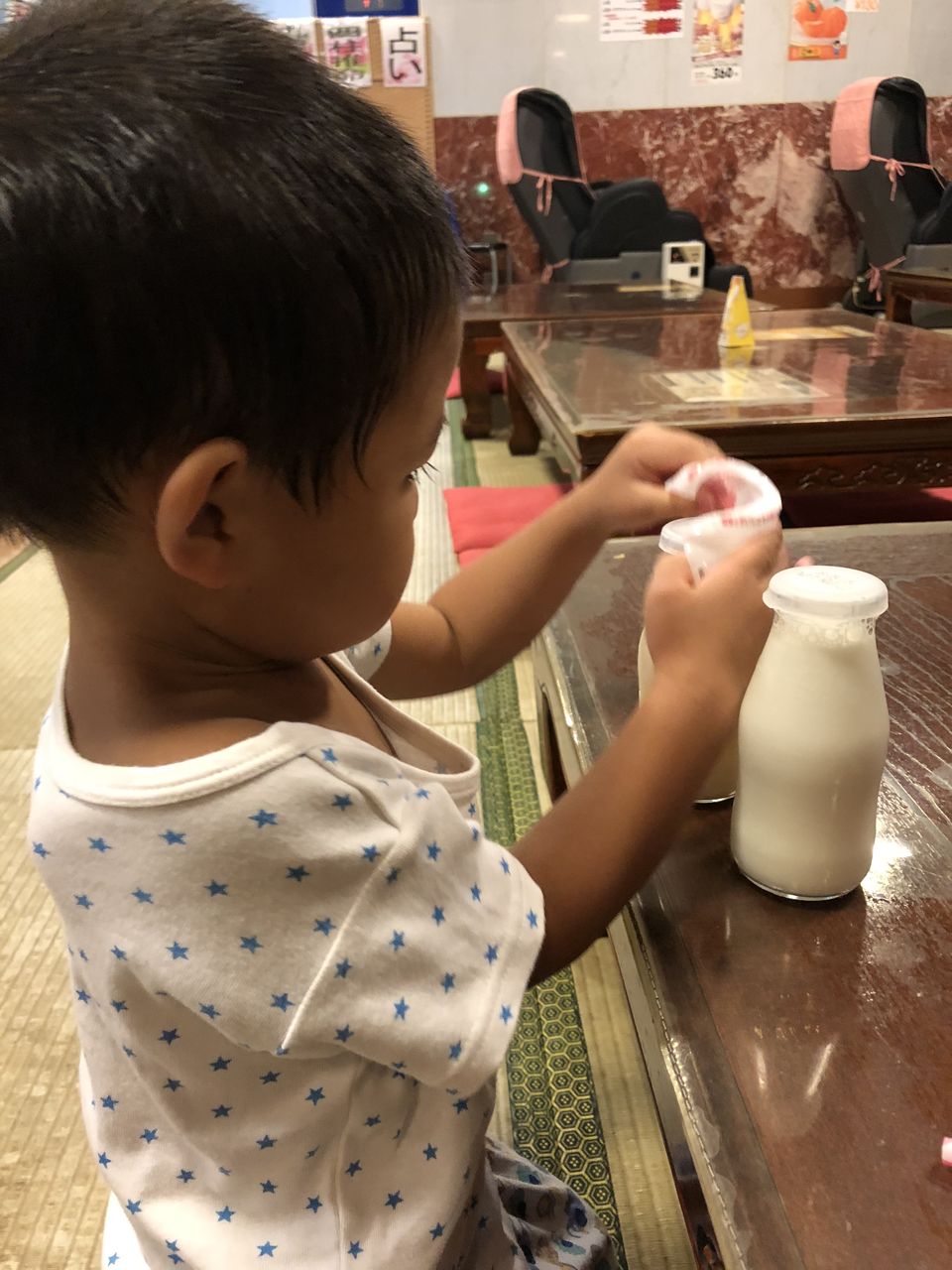 いつもの銭湯で感じる、はっちゃんの成長。 銭湯 コーヒー牛乳 風呂上がり マミー 自販機 邪魔 脱衣所 牛乳 キャップ 成長 一気飲み ビン 感想