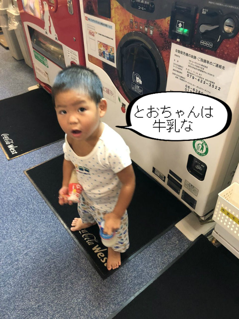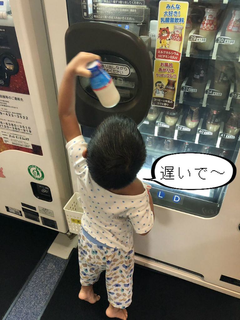 はっちゃんは自分が服着たら、勝手に脱衣所を出て行って自販機の前で待機