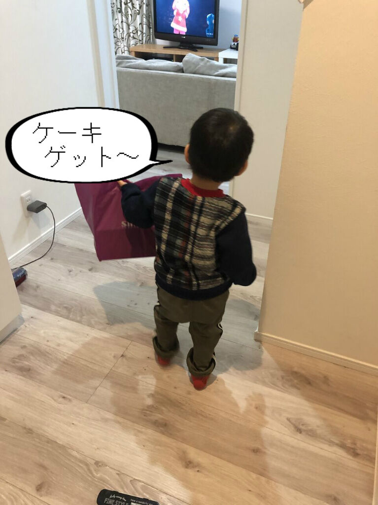 仕事の帰りに、お土産でケーキを買ってきた、とおちゃん