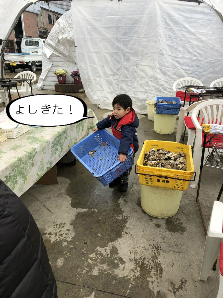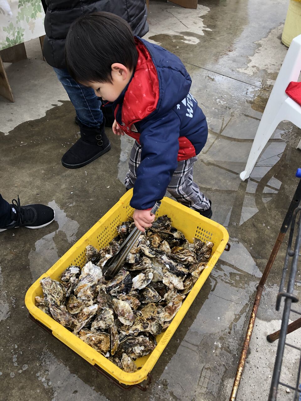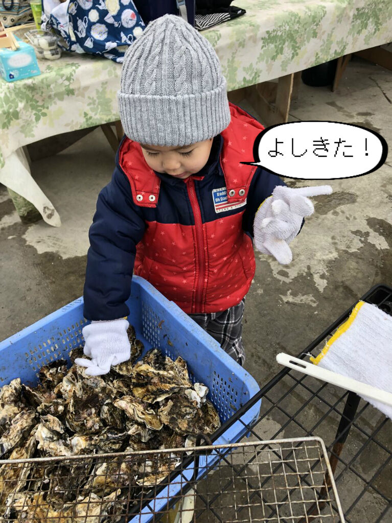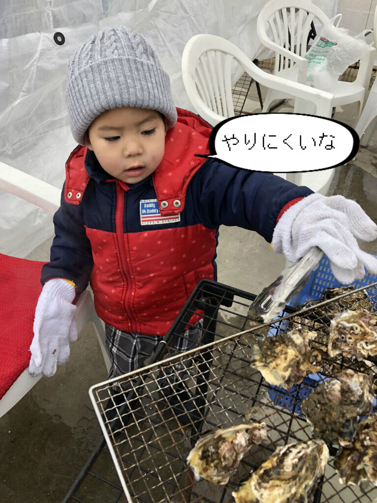 毎年の恒例行事、牡蠣の食べ放題に来ている、とおちゃんと、はっちゃん