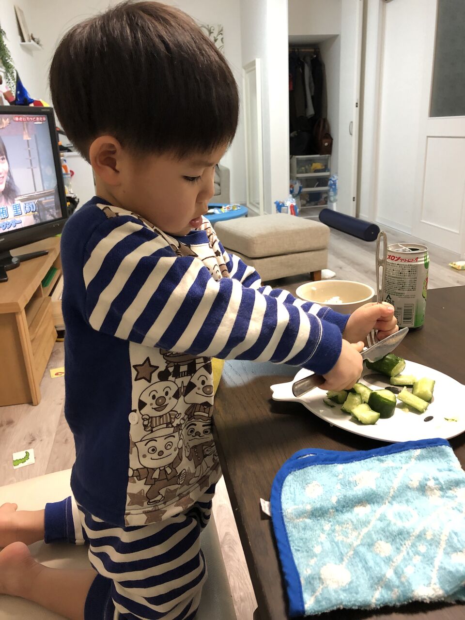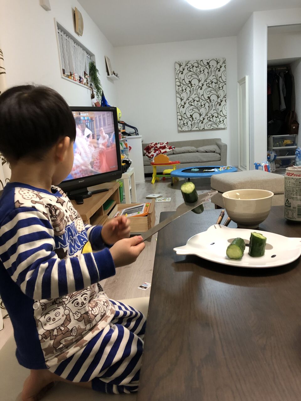2020年02月22日 テーブルマナーは程遠い。 ご飯も普通には食べてくれない、はっちゃんたぶん絵本か何かでナイフとフォークで食べるのを見たらしくきゅうりを持ってきてチャレンジする何できゅうりなのか・・・。は、置いといて意外と上手に使って切っとるやないかでも結局、きゅうりをバラバラに切り刻んで最後には遊びだす遊びだしたところで・・・危ないから、没収お行儀よく食べましょ~ テーブルマナーは程遠い。 #3歳 #子供 #ご飯 #食事 #きゅうり #ナイフ #フォーク #チャレンジ #バラバラ #没収 #危険 カテゴリなしの他の記事 タグ :#ご飯#食事#きゅうり#ナイフ#フォーク#チャレンジ#バラバラ#没収#危険 前の記事次の記事 コメント一覧 コメントフォーム 名前 コメント 評価する リセット リセット 顔 星 投稿する 情報を記憶