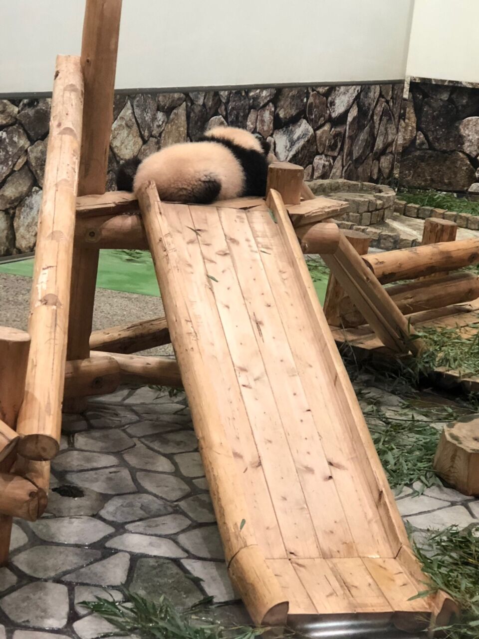 大人気のパンダのところに来た時には、はっちゃんは爆睡