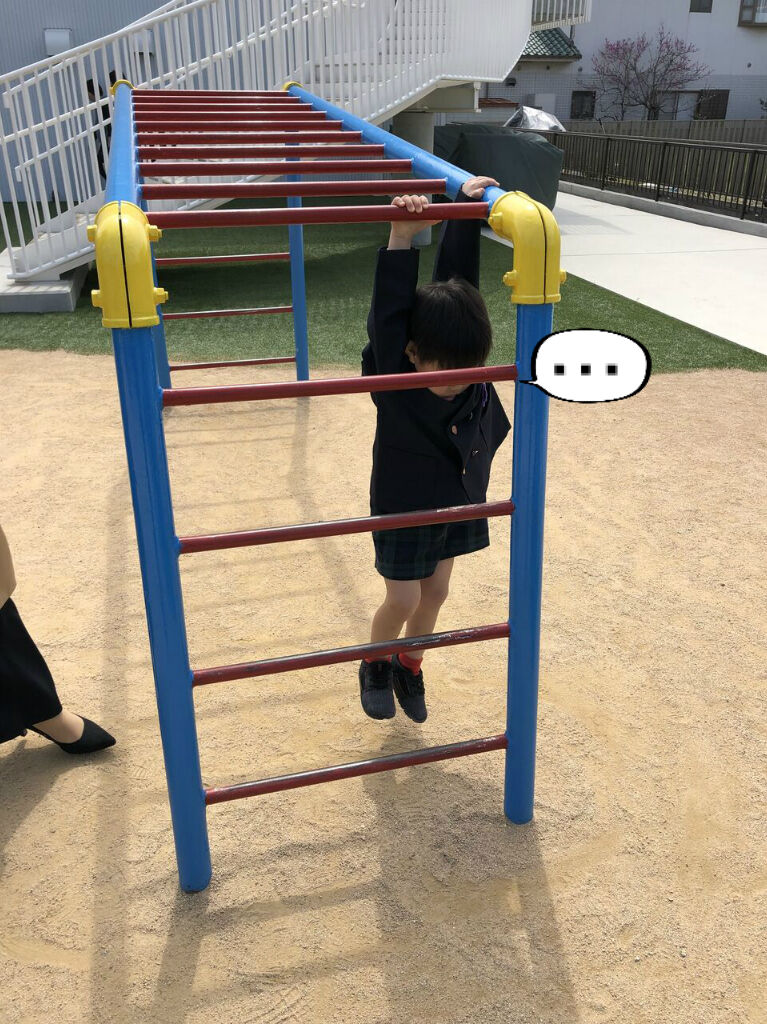 今はまだぶら下がってるだけやけど、卒園する前には渡れるようになったらエエな
