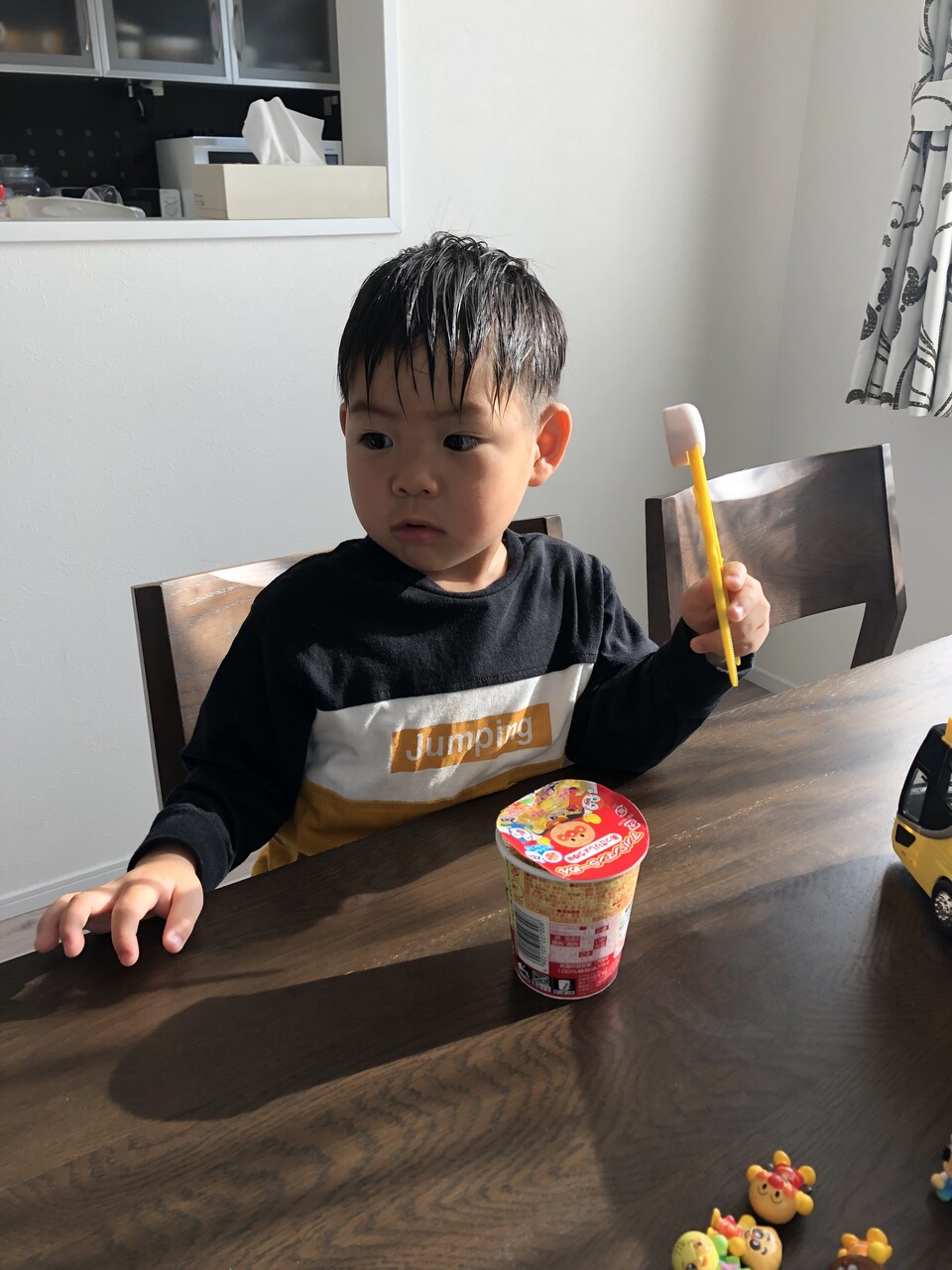 アンパンマンが付いてるだけで、こんなにも食べたがるとは