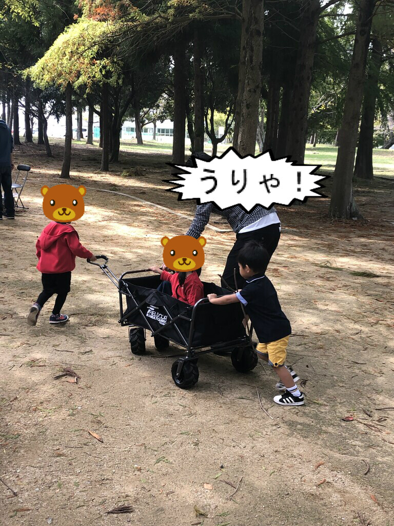 食べ終わった後は、順番に荷物運びの役目を終えたキャリーワゴンに乗って遊んで