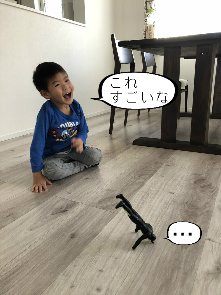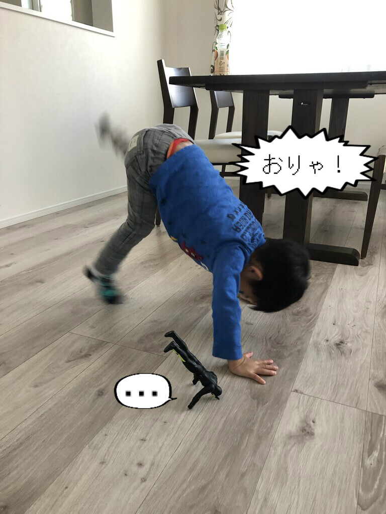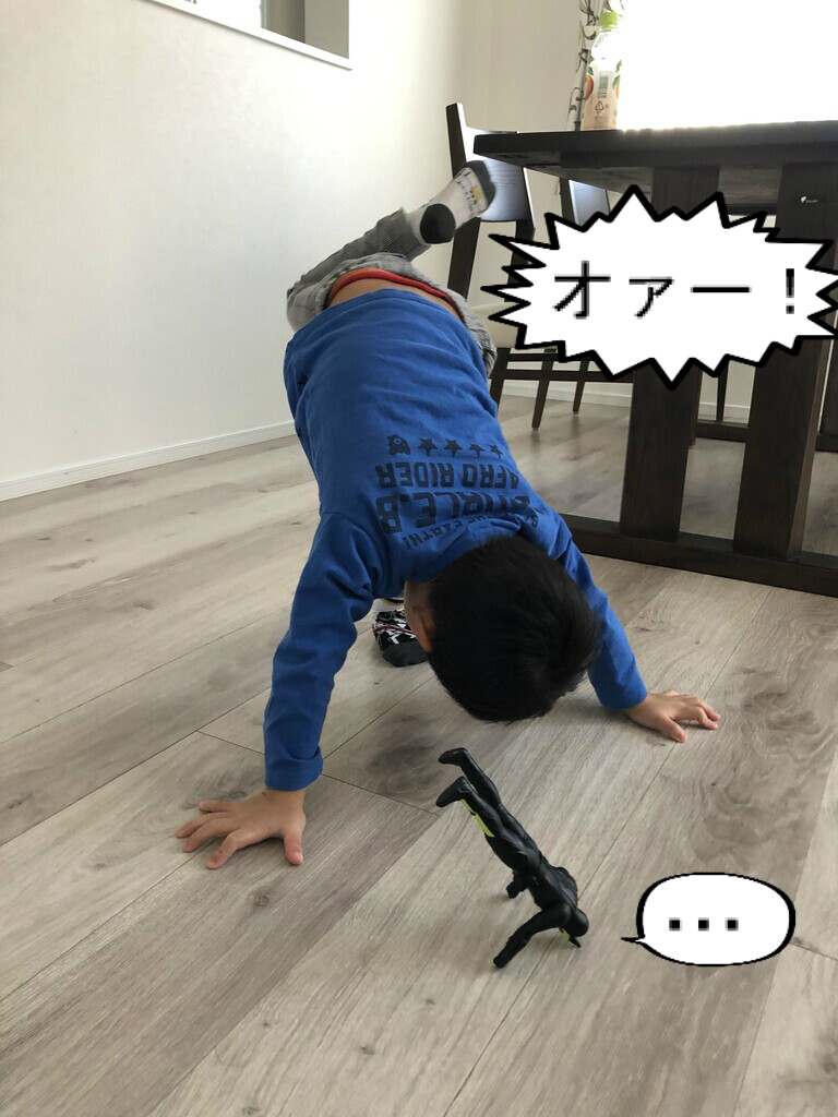 お気に入りの仮面ライダーに変なポーズをさせている、はっちゃん