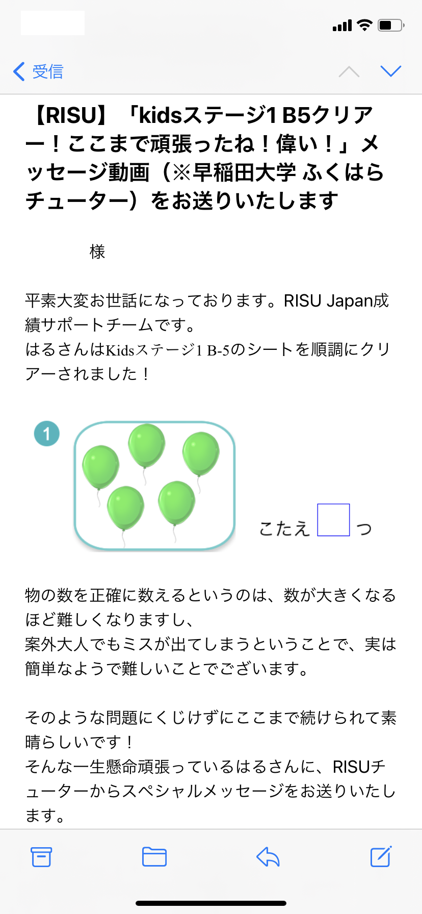 そして、気付いたらとおちゃんの携帯に、はっちゃんの学習状況がメールで届いてた