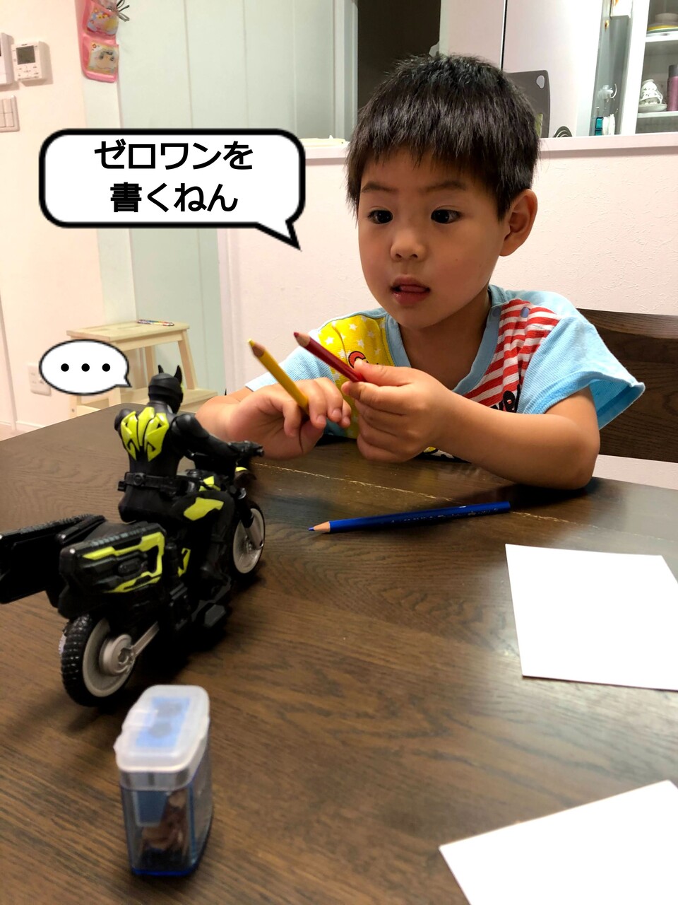 2021年05月22日 友達に手紙の返事を書こう! 幼馴染の友達からハガキで手紙をもらった、はっちゃん早速、はっちゃんもハガキを買って来て、返事を書くことにとはいえ、字はまだ書けへんから、ハガキには絵を描くことにはっちゃんは大好きな仮面ライダーゼロワンを書こうとしているけど仮面ライダーって、難しくないか?はっちゃんとおちゃんがお手本でバイキンマン書いたるから、とおちゃんのマネして書いたらいいやんアンパンマンを子ども扱いして、嫌がるアンパンマンが大好きで、アンパンマン漬の生活やったクセにっていうか、今もアンパンマンのパジャマ着てるクセに友達に手紙の返事を書こう! #3歳 #4歳 #子供 #幼馴染 #友達 #ハガキ #手紙 #返事 #仮面ライダー #ゼロワン #アンパンマン #バイキンマン カテゴリなしの他の記事 タグ :#幼馴染#友達#ハガキ#手紙#返事#仮面ライダー#ゼロワン#アンパンマン#バイキンマン 前の記事次の記事 コメント一覧 コメントフォーム 名前 コメント 評価する リセット リセット 顔 星 投稿する 情報を記憶